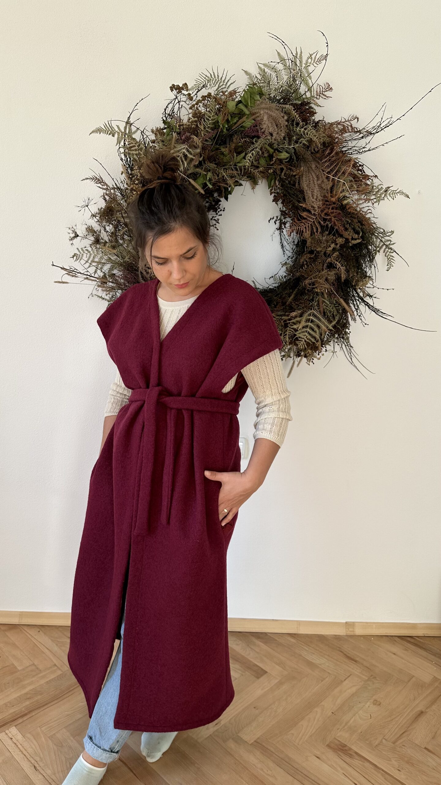 Tento 100% vlnený kúsok vás zaručene zahreje. A viete ho krásne kombinovať. Hodí sa ozaj pre rôzne typy žien, bez opätkov i s vysokými. Štruktúra varenej vlny zaisťuje, že vlákna nikdy nie sú príliš tesné a cirkuluje medzi nimi vzduch, čo zaručuje vynikajúce tepelnoizolačné vlastnosti tejto látky. Môžete farbu vybrať zo vzorkovníka, doporučujem jej dostupnosť so mnou v správe prekonzultovať.