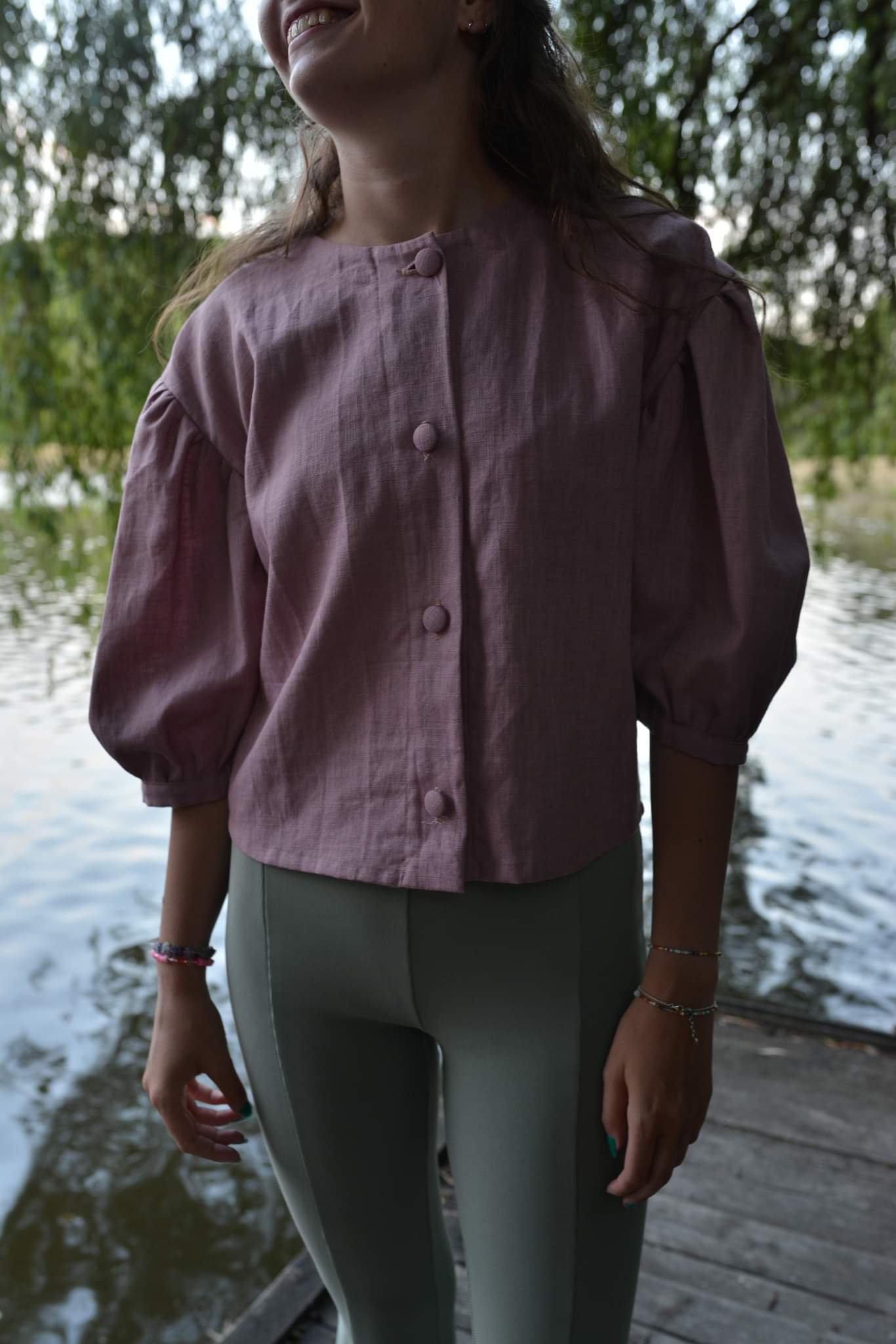 Romantický ľanový kabátik k rôznemu štýlu oblečenia. Môžete nosiť samotný alebo ako druhú vrstvu, taktiež doplniť ľanovým maľovaným golierom (v ponuke). Je praktický na celoročné využitie.