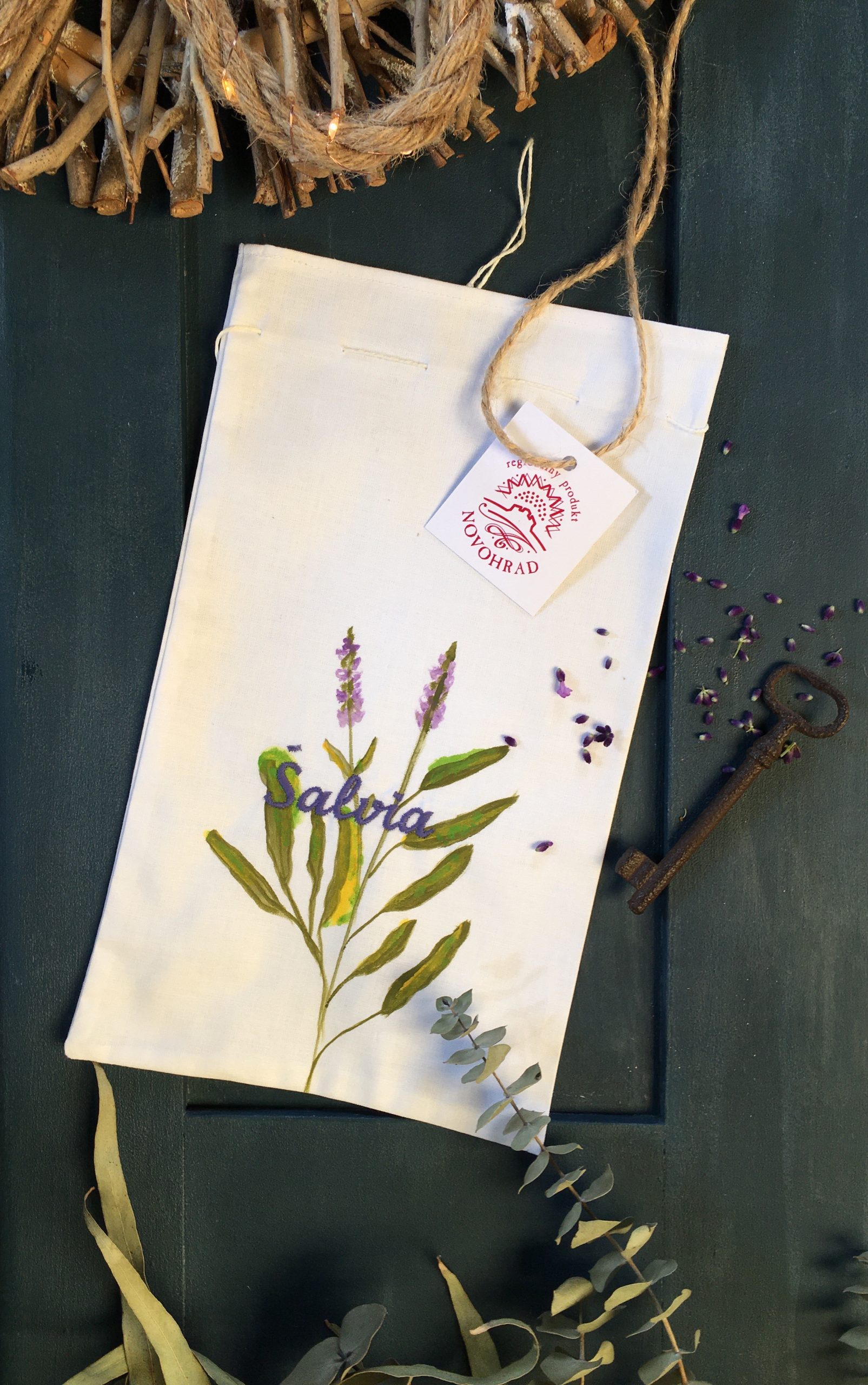 Vrecúško na šalviu s maľovanou rastlinou a s vyšívaným názvom byliny poslúži na uskladnenie vašej sušenej lekárne, ktoré zároveň ozdobí domov vo vidieckom štýle.