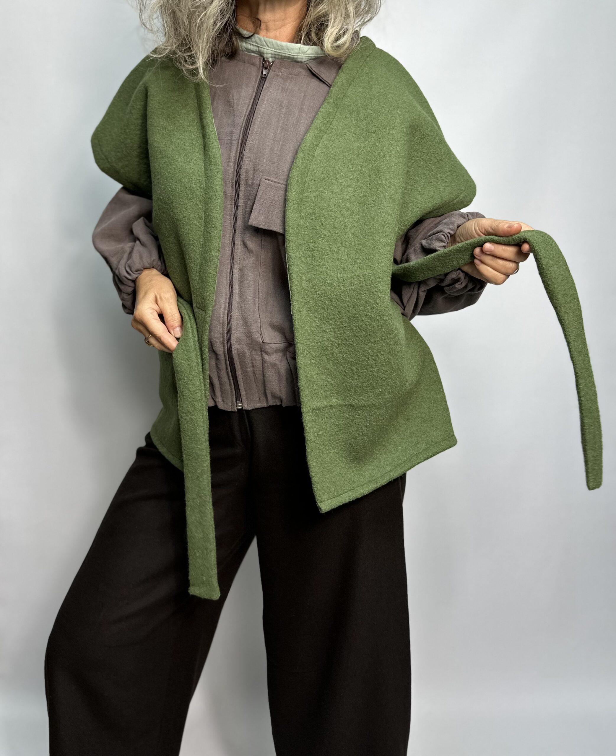 Tento 100% vlnený kúsok vás zaručene zahreje. Má pás na previazanie. Viete ho krásne kombinovať. Hodí sa ozaj pre rôzne typy žien, bez opätkov i s vysokými. Štruktúra varenej vlny zaisťuje, že vlákna nikdy nie sú príliš tesné a cirkuluje medzi nimi vzduch, čo zaručuje vynikajúce tepelnoizolačné vlastnosti tejto látky. Môžete farbu vybrať zo vzorkovníka,  Doba výroby do 3 týždňov.
