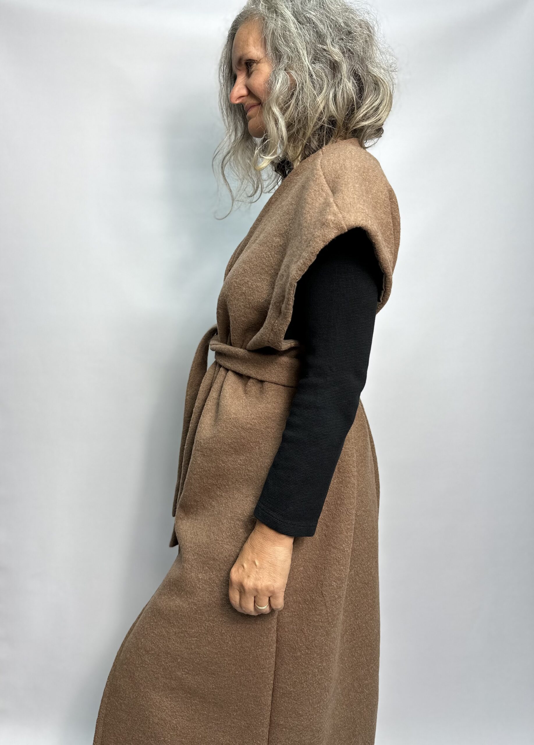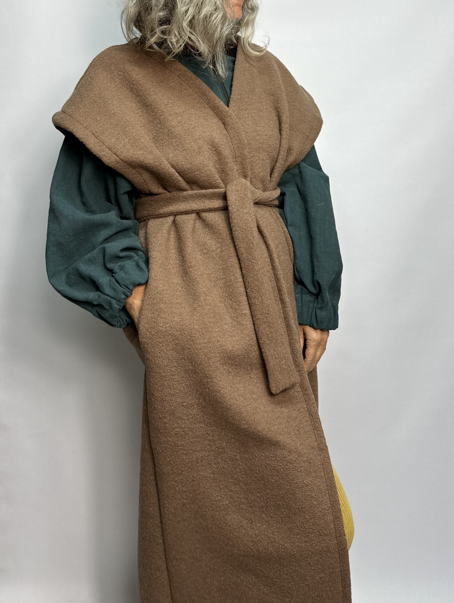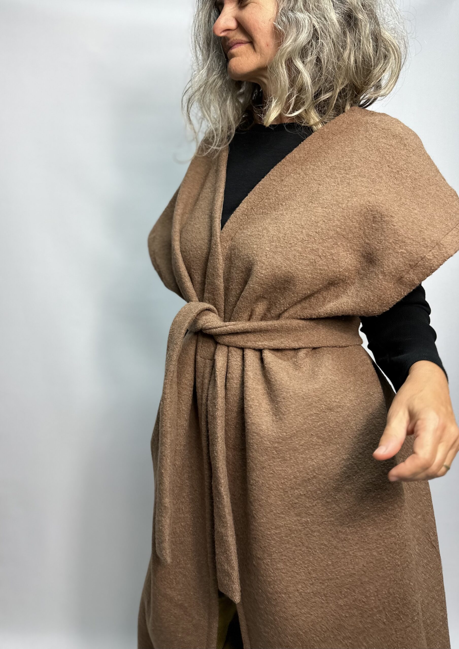Tento 100% vlnený kúsok vás zaručene zahreje. Má jedno bočné vrecko a pás na previazanie. Viete ho krásne kombinovať. Hodí sa ozaj pre rôzne typy žien, bez opätkov i s vysokými. Štruktúra varenej vlny zaisťuje, že vlákna nikdy nie sú príliš tesné a cirkuluje medzi nimi vzduch, čo zaručuje vynikajúce tepelnoizolačné vlastnosti tejto látky. Môžete farbu vybrať zo vzorkovníka,  Doba výroby do 3 týždňov.