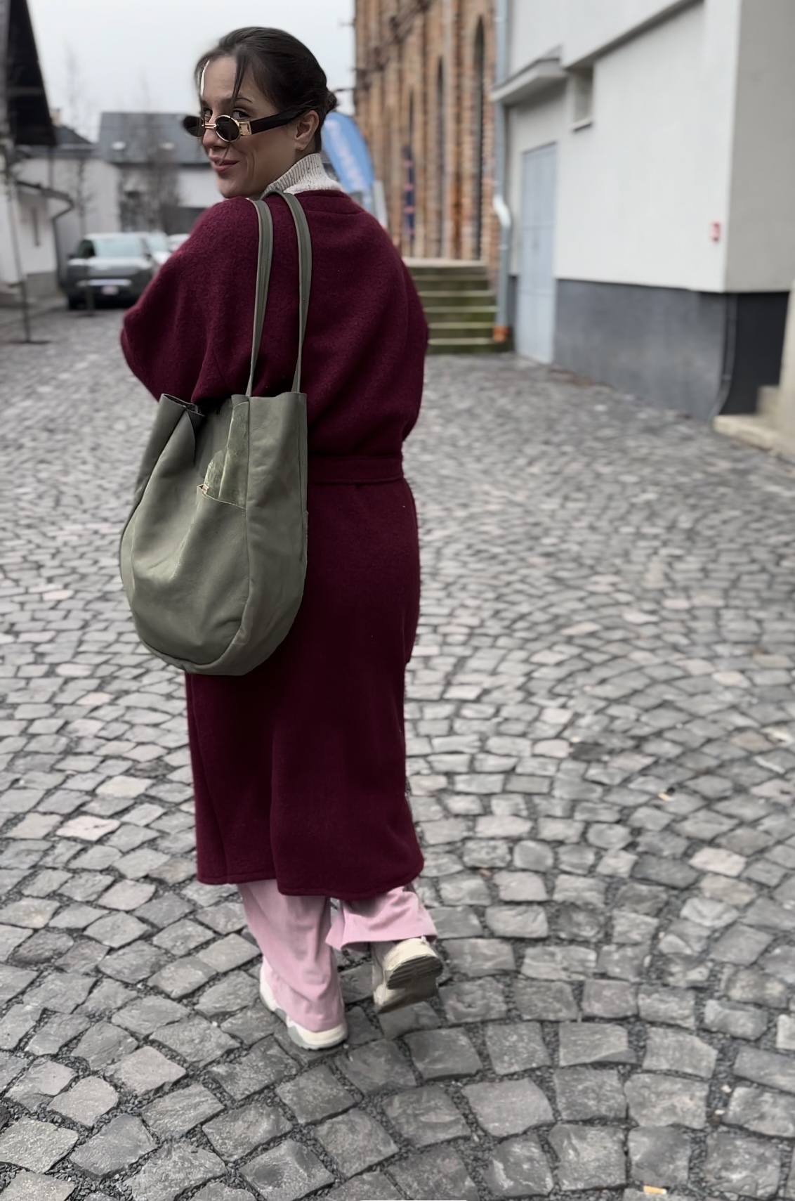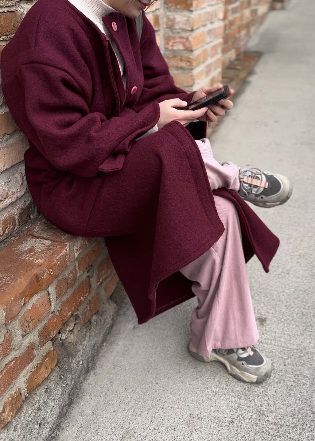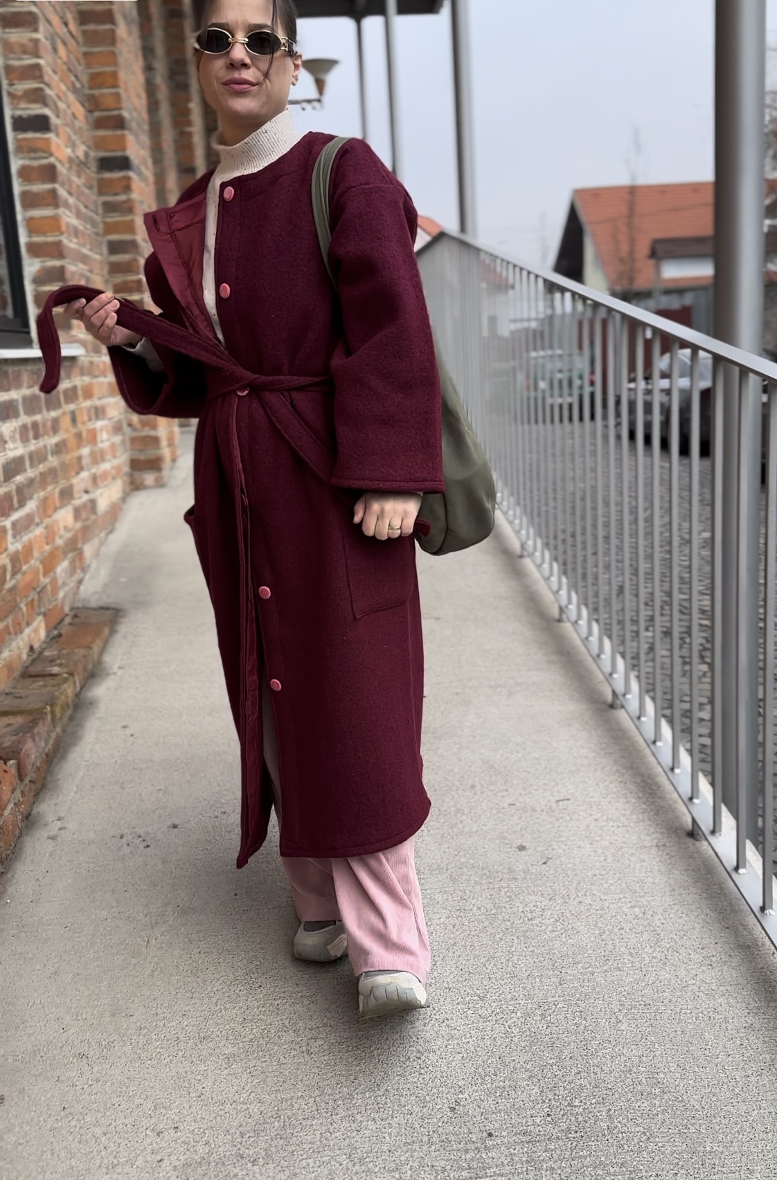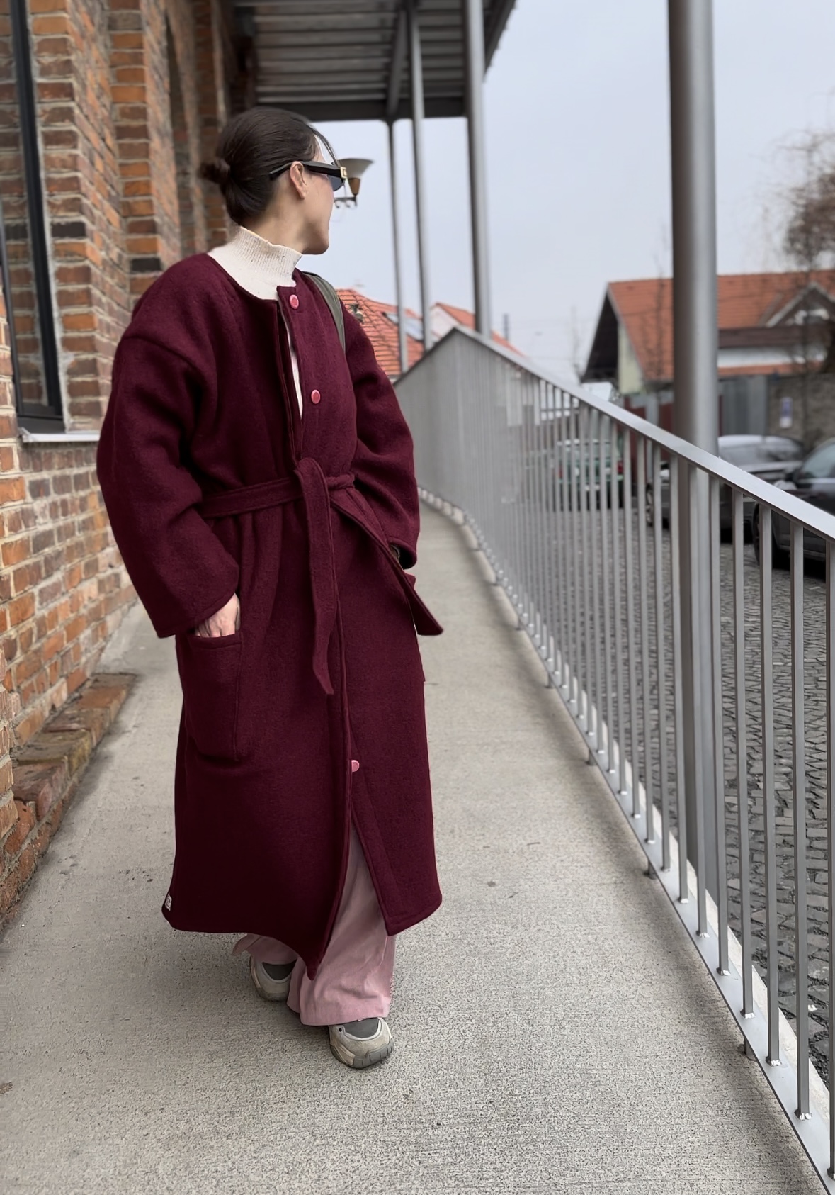 Vlnený kabát vínový